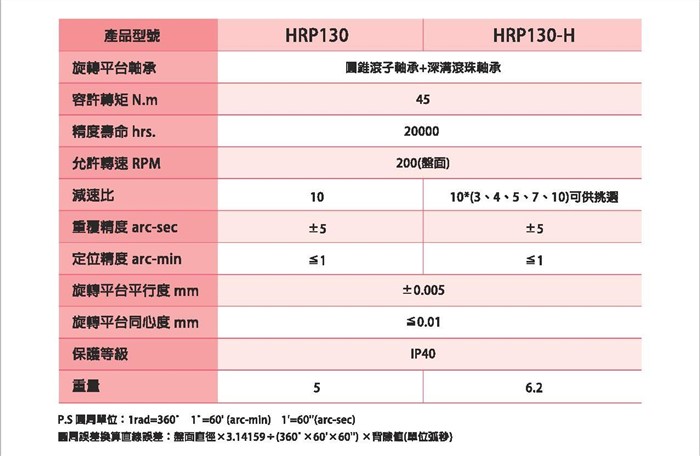 可搭配伺服馬達或減速齒輪箱,提供使用者多種選單。 工作平台可直接與工件配合,提高便利性。 旋轉平台為中空軸設計,適用於配線(管)之場合。 定位精度小於1弧分、重複精度可達±5弧秒,增加產品之穩定性。 DH系列最佳的性價比可廣泛應用於各種場合。 DOWNLOAD:HRP130-10.pdf